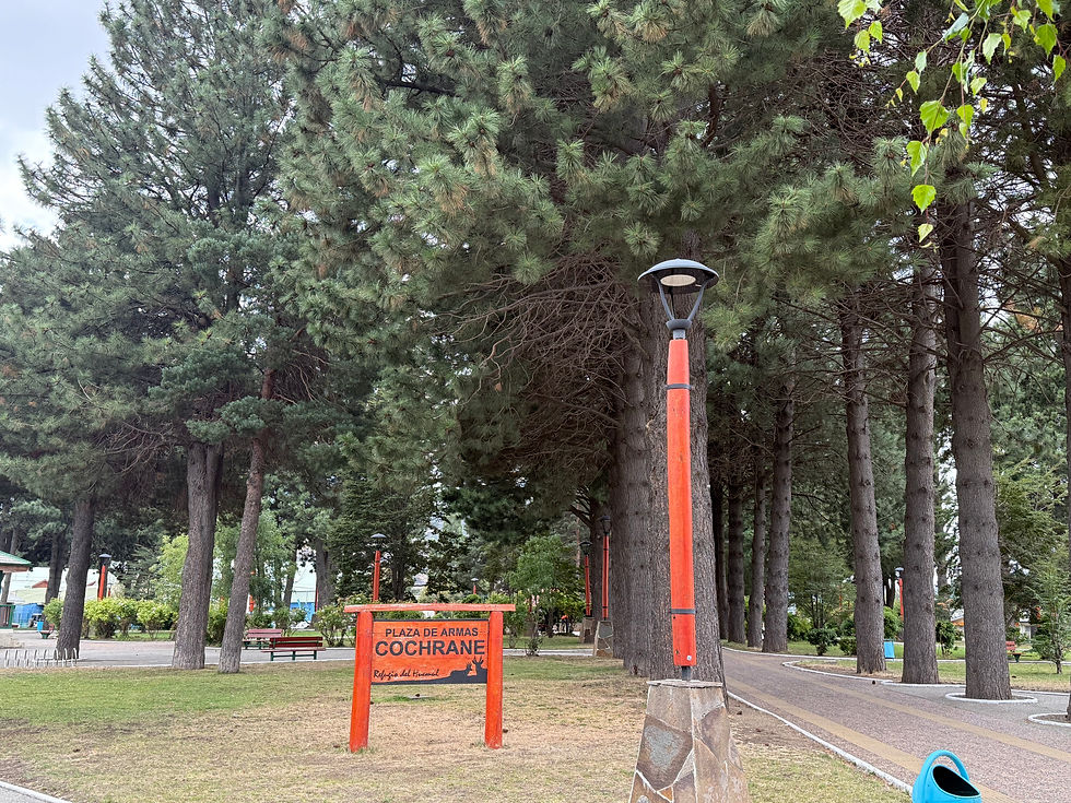 Although the climb was steep and slow, it offered incredible panoramic views and passed directly by the entrance to Patagonia National Park. Once we reached the pass, we descended into Cochrane, the last full-service town along the Carretera. From above, it looks like an oasis town built in the middle of nowhere. It is well known as one of the gateways to Patagonia National Park. Interestingly, the town was settled in 1953 and did not have automobile access until the Carretera reached it in 1988. Here, we are spending the night and planning the final southern leg of our tour.