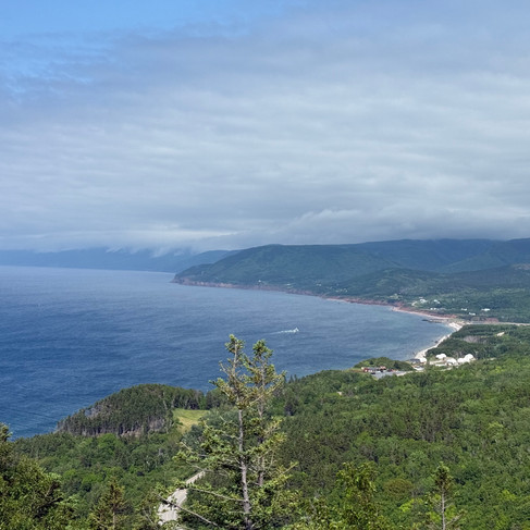 About half an hour into our ride, we entered Cape Breton Highlands National Park. It was immediately evident that we were entering a special area: rain-drenched virgin spruce forests surrounded us. The park ranger at the entry kiosk provided us with a map and information on what to expect in terms of roads, inclines, and wildlife. We were advised to be cautious of black bears, moose, and coyotes. Apparently, the coyotes are currently the most dangerous, as they hunt in packs and have been known to attack and even kill park visitors (yikes!). I was hopeful for a moose sighting, but the coyote warning unnerved me. The gloomy weather and dense forest did nothing to reassure us that we wouldn’t be attacked!